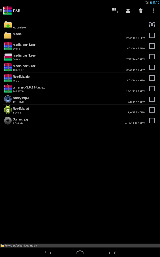 Overview: RARLAB's RAR for Android can create RAR and ZIP and unpack RAR, ZIP, TAR, GZ, BZ2, XZ, 7z, ISO, ARJ archives. ZIP and RAR repair command. Benchmark function compatible with RARLAB's WinRAR benchmark. Recovery record, usual and recovery volumes, encryption, solid archives, utilizing multiple CPU cores to compress data.